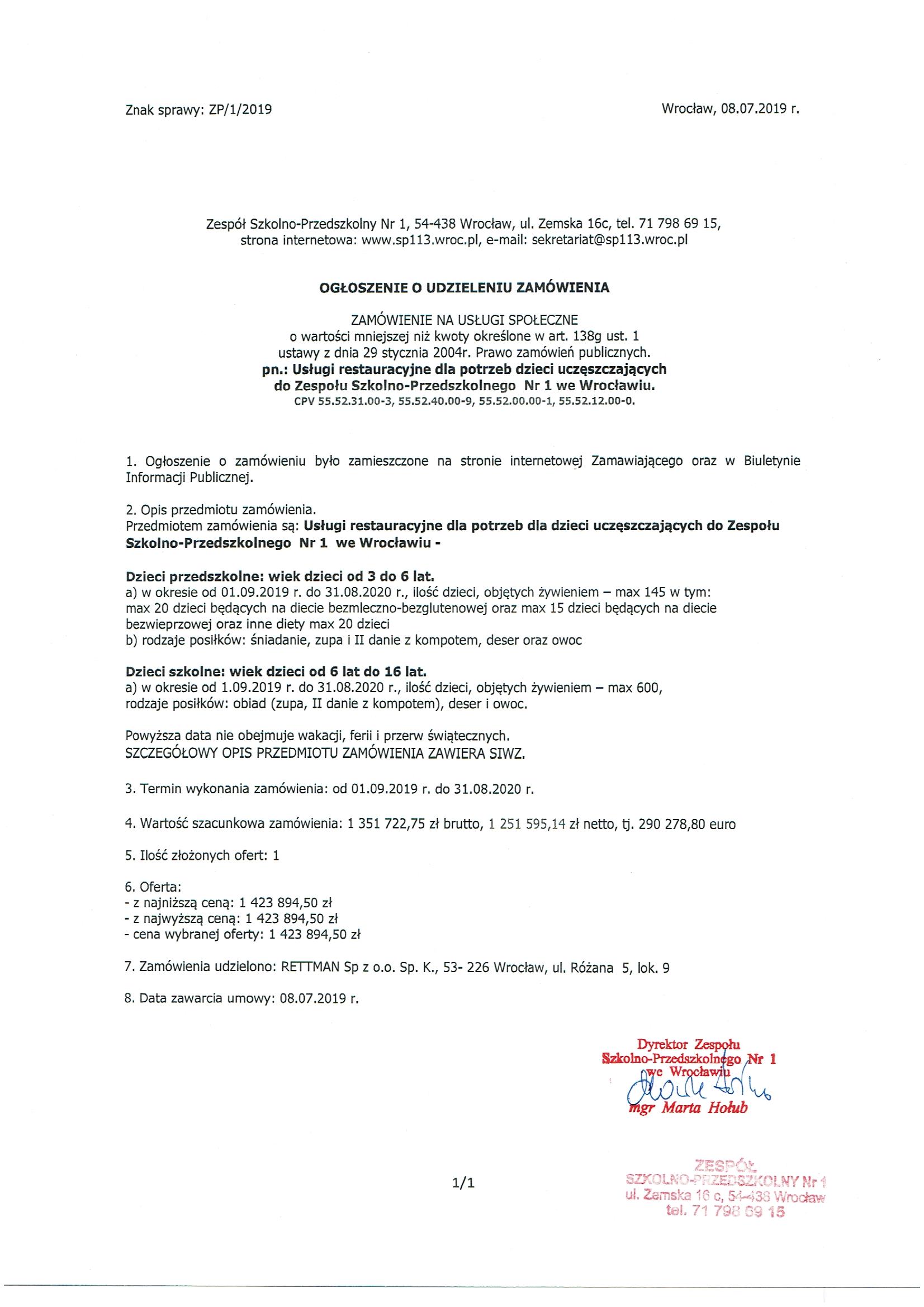 Przetargi Ogłoszenie o udzieleniu zamówienia Ogłoszenie o wyborze najkorzystniejszej oferty przetargu Wybór wykonawcy robót budowlanych o charakterze remontu na rzecz ZSP nr 1 we Wrocławiu