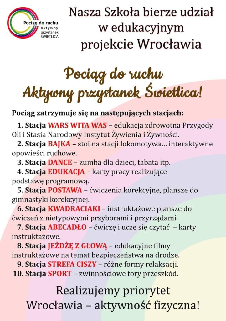 „Pociąg do ruchu – aktywny przystanek świetlica” – Szkoła Podstawowa nr 113