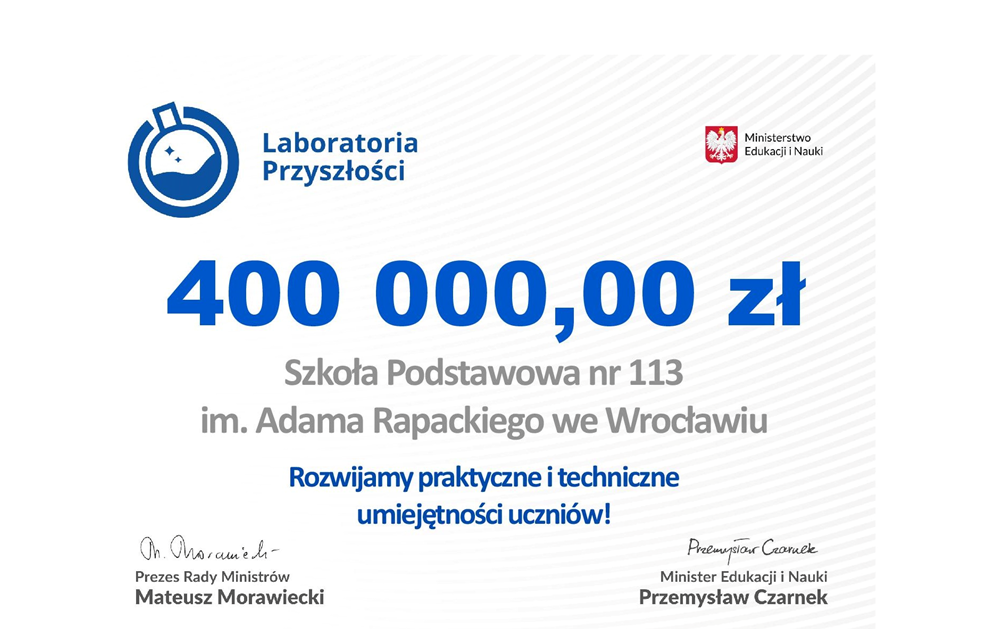 Nasza szkoła otrzymała na ten cel 400 000 zł. Część z tej kwoty wydatkowana została w 2021 roku.