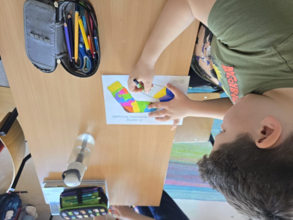 Na koniec uczniowie wykonali kolorowe skarpetki, które stały się symbolem solidaryzowania się z osobami chorymi.