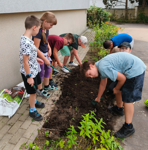 …pracowali na grządce użyźniając glebę i sadząc ozdobne rośliny wieloletnie. Mamy nadzieję, że będą one cieszyły nasze oczy…