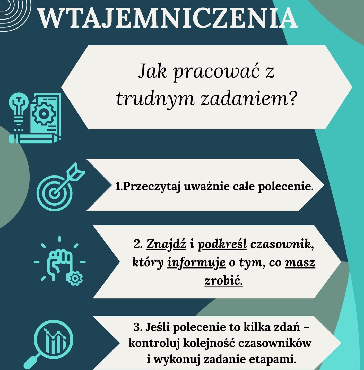 Czytanie ze zrozumieniem to klucz do sukcesu! Najpierw uważnie przeczytaj całe polecenie. Podkreśl czasownik – on mówi, co…
