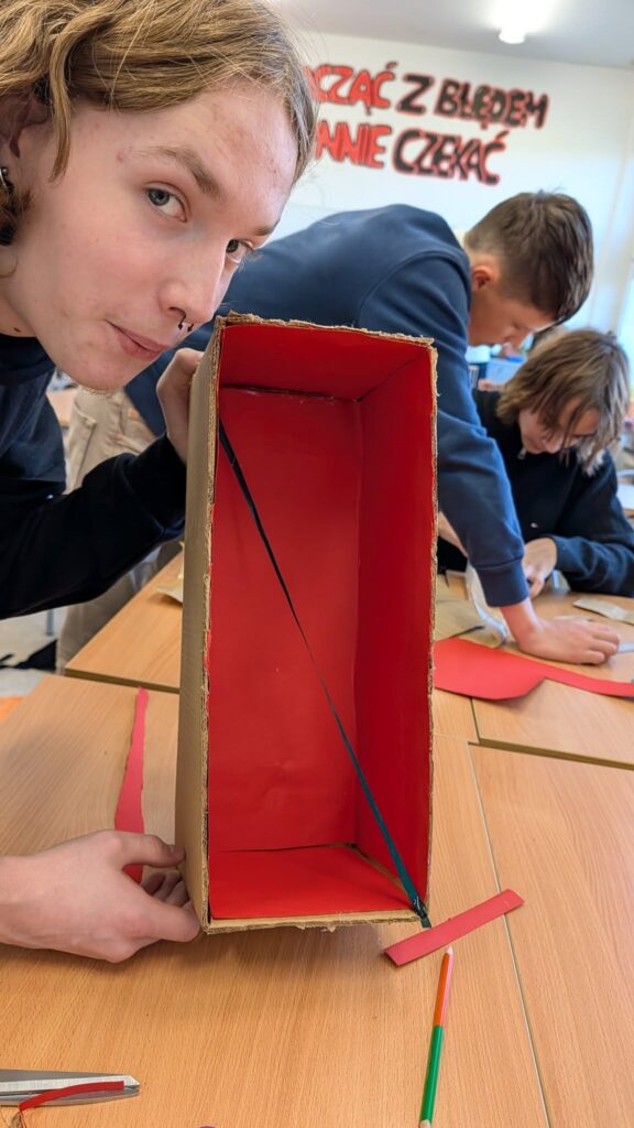 Kilka starych pudeł, trochę gorącego kleju, odrobina wyobraźni… i oto mamy idealne pomoce naukowe wykonane własnoręcznie przez uczniów klasy 8B!