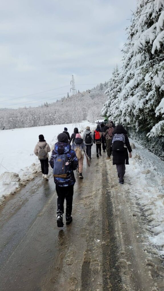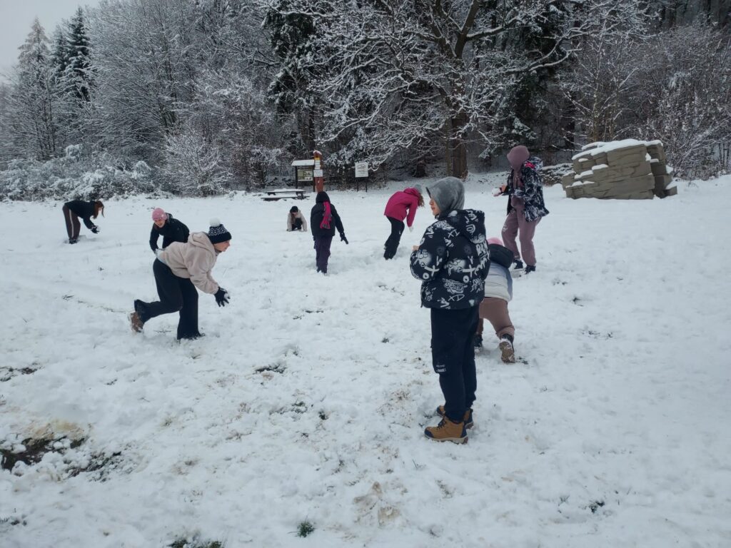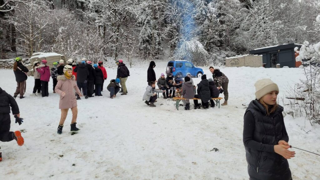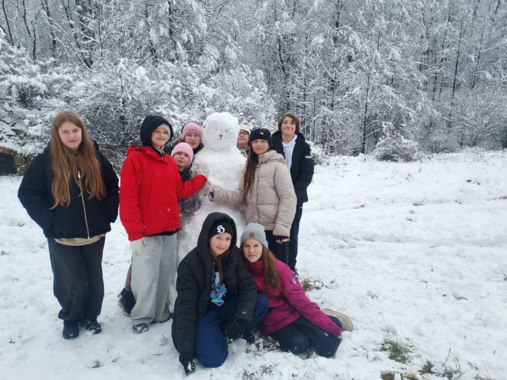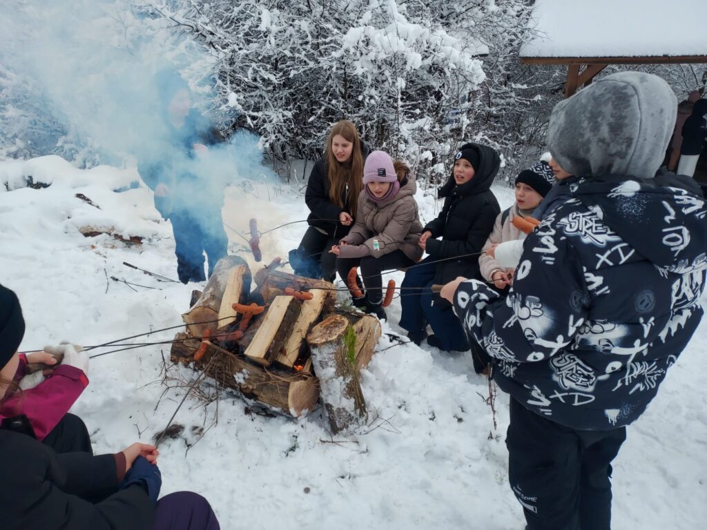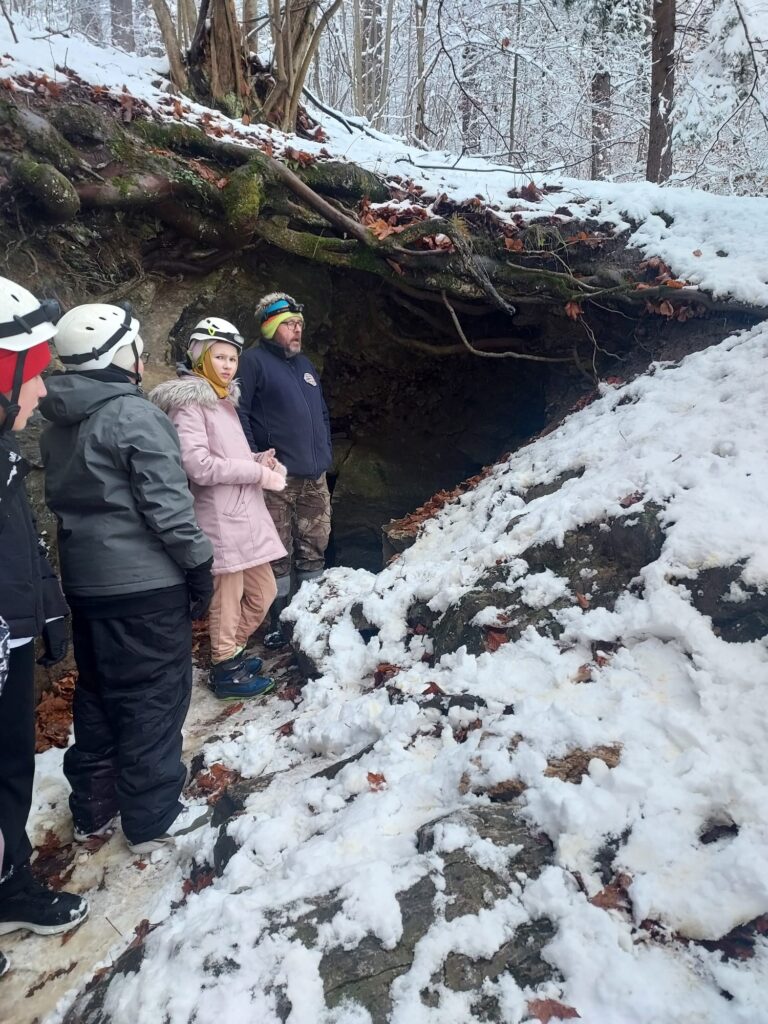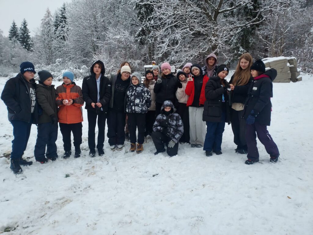 odetchnąć innym powietrzem, zobaczyć coś ciekawego. Klasy 6d i 6i tak właśnie zrobiły 27 listopada. Klasy wraz z wychowawczyniami i panem Jerzym Zakrzewskim pojechały do Jaskini Radochowskiej. A tam? Tam czekała na nich zima jak z obrazka. Piękna pogoda, dużo śniegu, świetne humory – czy trzeba czegoś więcej? Spacer, lepienie bałwana bitwy na śnieżki, no i oczywiście jaskinia, która dostarczyła mnóstwo emocji. Ciemne, wąskie korytarze, czasem trzeba było przeciskać niemal na leżąco. A wokół nietoperze. To dopiero było przeżycie! Jaskinia jest naprawdę warta zobaczenia. Jednak nie tylko doświadczaniem przyrody człowiek żyje. Były też kiełbaski z ogniska.
