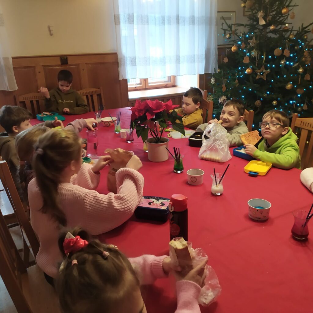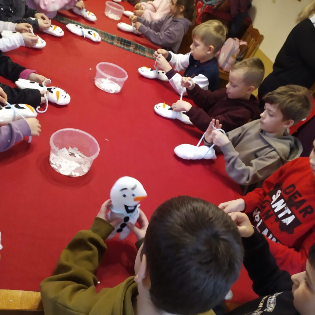 Środowe przedpołudnie klasa 1c (15. grupa świetlicowa) spędziła w bardzo świątecznym nastroju w malowniczej miejscowości Zawonia. Wzięliśmy udział w warsztatach kreatywnych tworząc bałwanki i dekorując pierniki. Spotkaliśmy się z dzikami oraz łanią Basią. Z wyprawy przywieźliśmy piękną choinkę, która umili nam przedświąteczny czas.