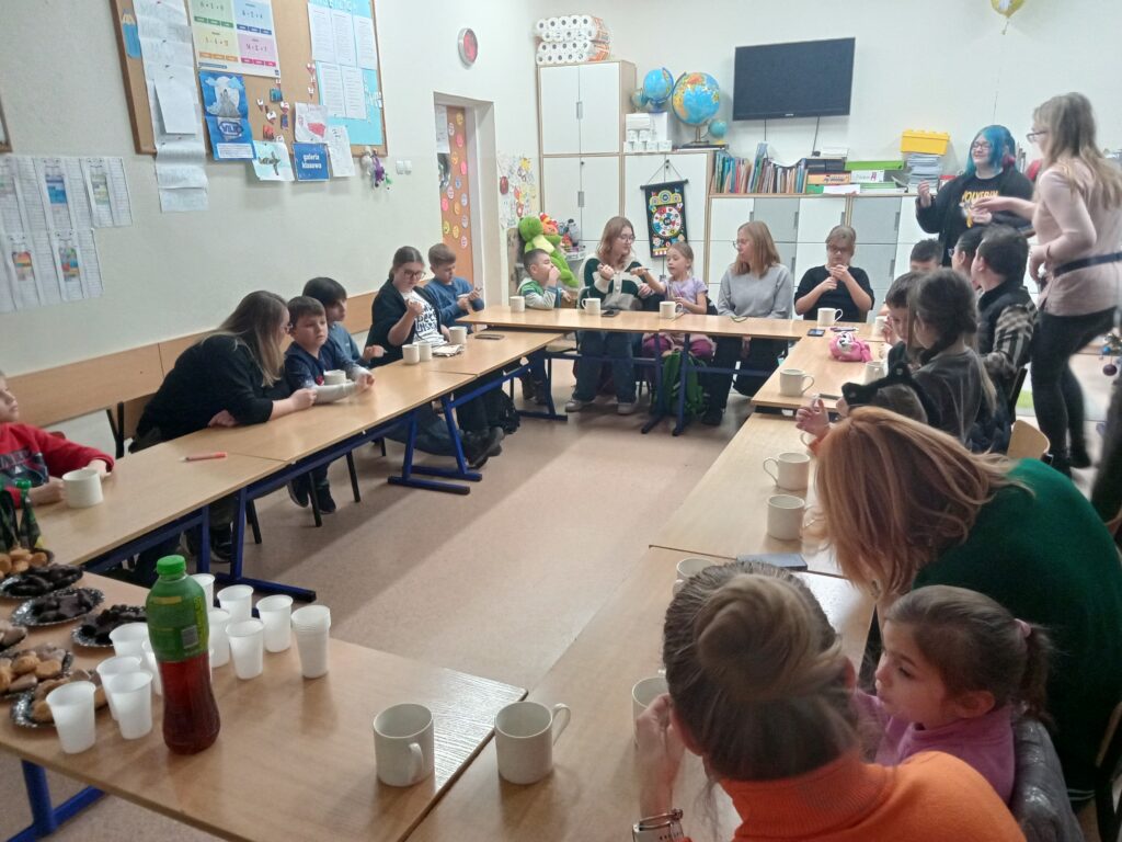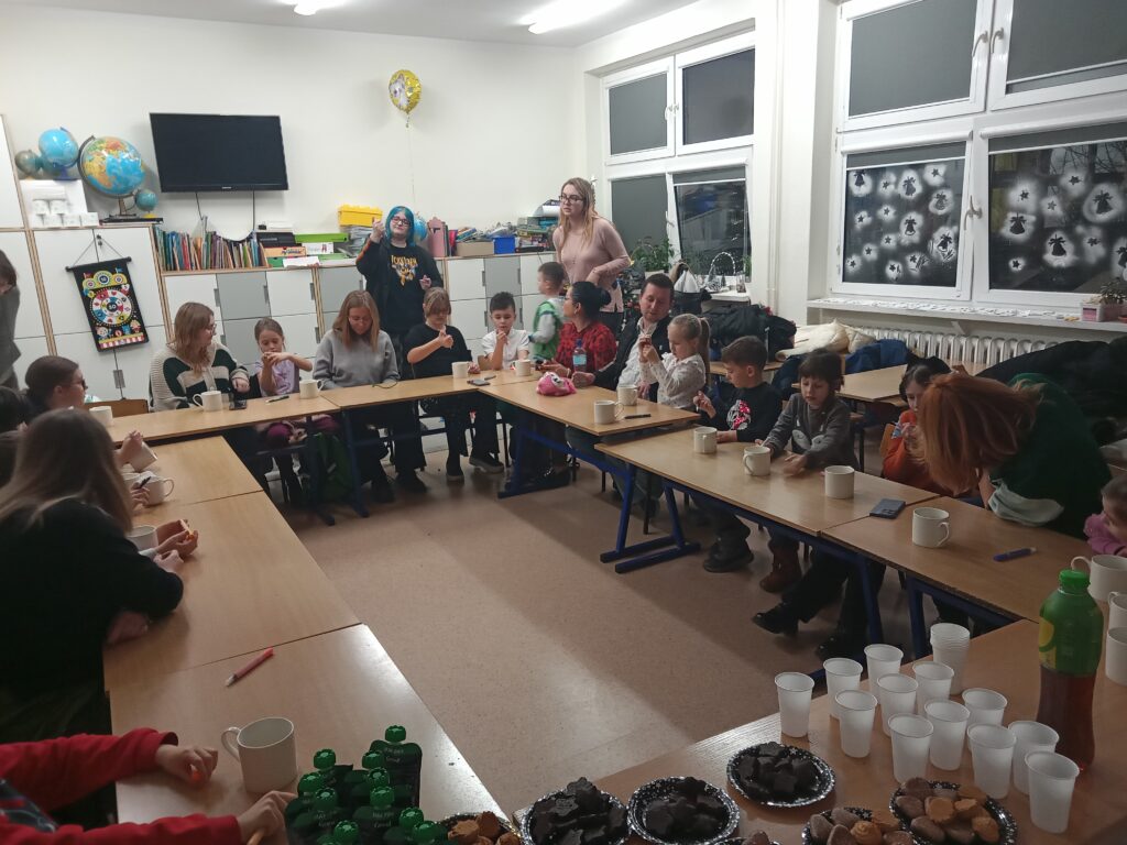 W ostatnich dniach wolontariusze z projektu Akademia Przyszłości zorganizowali wyjątkowe, pełne radości świąteczne spotkanie dla dzieci uczestniczących w projekcie oraz ich rodziców. Wydarzenie było doskonałą okazją do wspólnej zabawy, integracji oraz świątecznego świętowania w ciepłej atmosferze. Dzieci ozdabiały kubki, które zabrały do domu, jako pamiątkę tego wyjątkowego dnia. Równolegle odbyło się malowanie twarzy – na dziecięcych buziach pojawiły się zimowe motywy. Nie zabrakło też słodkiego poczęstunku, przy którym uczestnicy mogli chwilę odpocząć, porozmawiać i lepiej się poznać. Wspólne świętowanie uświetniła muzyka, która wprowadziła wszystkich w radosny nastrój.