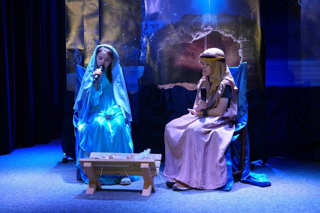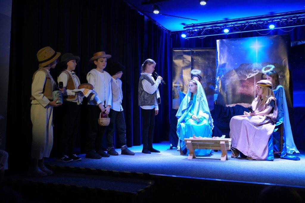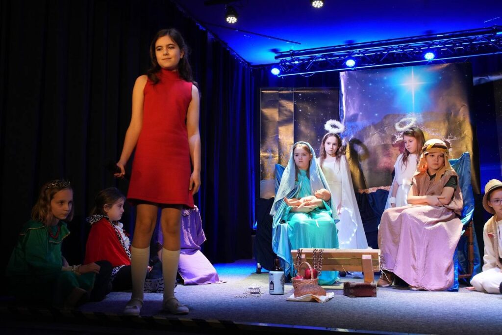 Młodzi aktorzy z ogromnym zaangażowaniem przypomnieli nam historię narodzin w Betlejem. Nie zabrakło pięknych kolęd w wykonaniu Zespołu z Duszą, wzruszających dialogów i… odrobiny humoru! Scenografia i kostiumy zapierały dech w piersiach, a wspólne kolędowanie na koniec występu zjednoczyło całą społeczność szkolną.