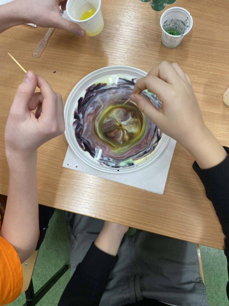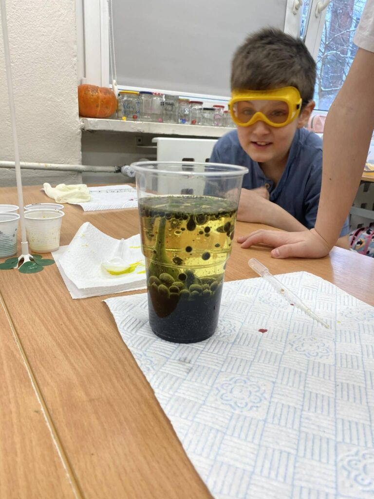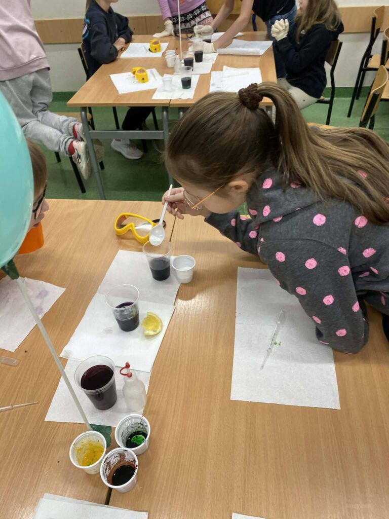 Dziś w naszej klasie realizowaliśmy zajęcia o charakterze interdyscyplinarnym, łącząc edukację polonistyczną z elementami nauk przyrodniczych. W ramach pracy z lekturą „Rany Julek, o tym jak Julian Tuwim został poetą” uczniowie wykonywali proste doświadczenia chemiczne, nawiązujące do dziecięcej ciekawości świata i pasji poznawczej bohatera. Zajęcia sprzyjały aktywnemu uczeniu się, rozwijaniu umiejętności obserwacji oraz pokazaniu, że nauka i literatura wzajemnie się przenikają.