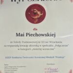 13 marca podczas Gali jury wyróżniło nagrodą indywidualną Maję Piechowską z kl. 6g za kreację aktorską w kategorii „zwierzę sceniczne”.