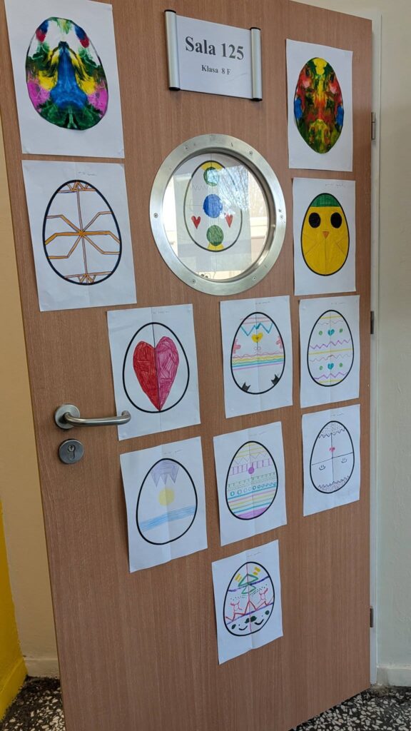 Nasze lekcje Matematyczne Pisanki, czyli klasa 4b na tropie symetrii! Wielkanocne przygotowania połączyliśmy z nauką o symetrii osiowej. Efektem naszych zmagań jest galeria wyjątkowych, symetrycznych pisanek, która ozdobiła drzwi sali. Jak widać, matematyka i sztuka to duet idealny! Współpracujemy z Dolnośląskim Centrum Wolontariatu Stowarzyszenie „ŻYJ KOLOROWO”! Informacja o obiadach – KWIECIEŃ