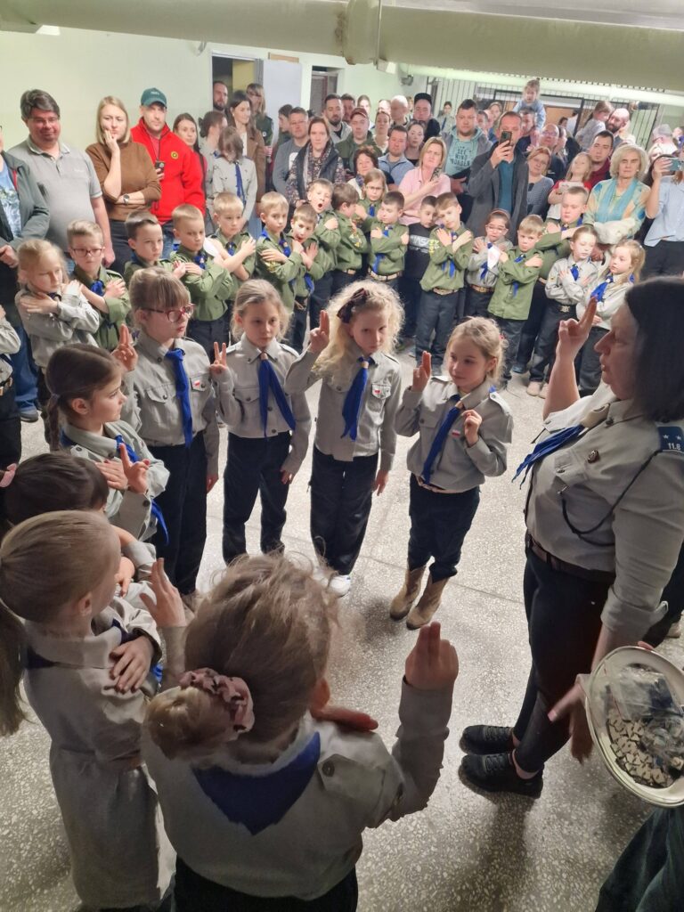 Po ukończeniu wszystkich zadań spotkaliśmy się przy ogniu, gdzie w wyjątkowej atmosferze zuchy złożyły swoją obietnicę i odebrały zasłużone znaczki.