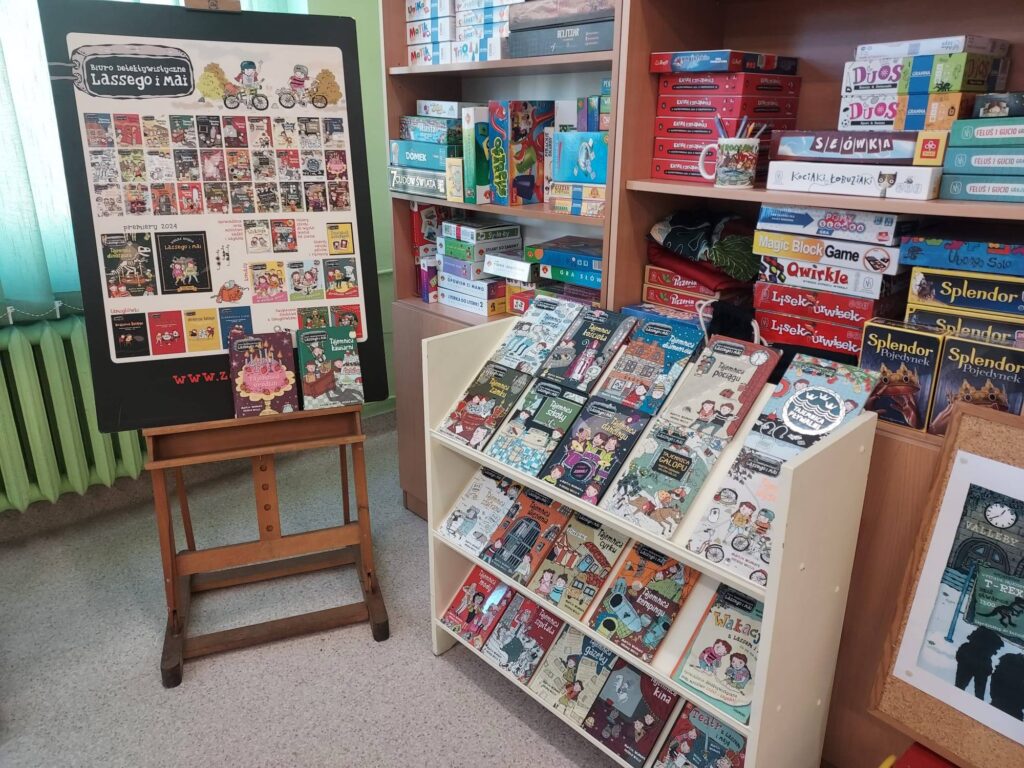 Tak, to nasza szkolna biblioteka, która chwilowo zamieniła się w fikcyjne szwedzkie miasteczko Valleby, znane dzieciom z serii książek „Biuro detektywistyczne Lassego i Mai”. Przez kilkanaście najbliższych dni nasi najmłodsi czytelnicy będą mieli okazję poznać mieszkańców Valleby. Pomogą Lassemu i Mai detektywom tajemnicę dinozaura. Wiemy już, że uczniowie naszej szkoły są bardzo bystrymi obserwatorami i mają dużą zdolność dedukcji.