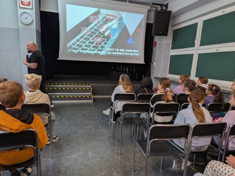 Dziś nasi uczniowie uczestniczyli w zajęciach prowadzonych przez Pana Łukasza Gierka. Tematem spotkania było „Jak odróżnić żart…